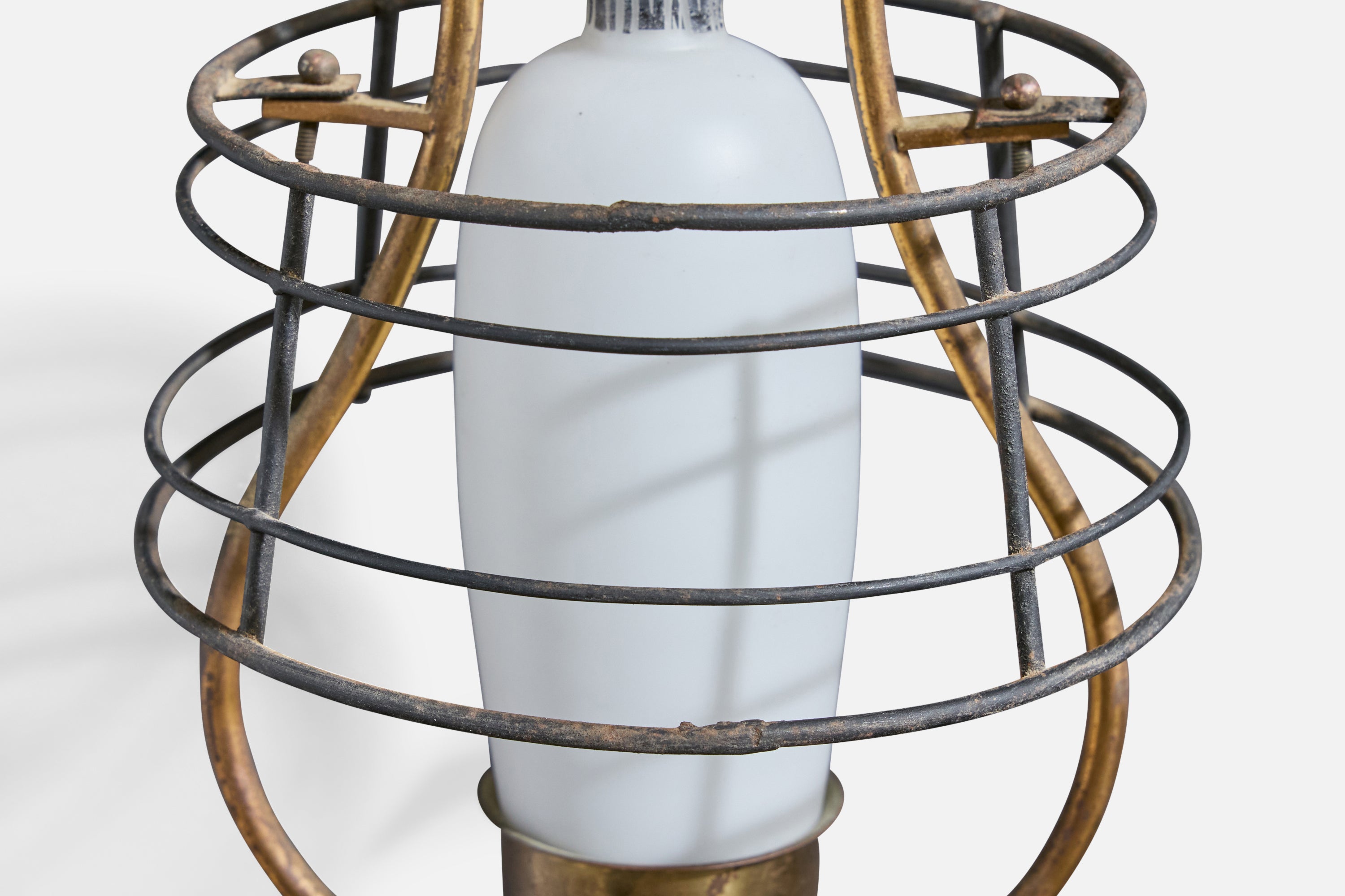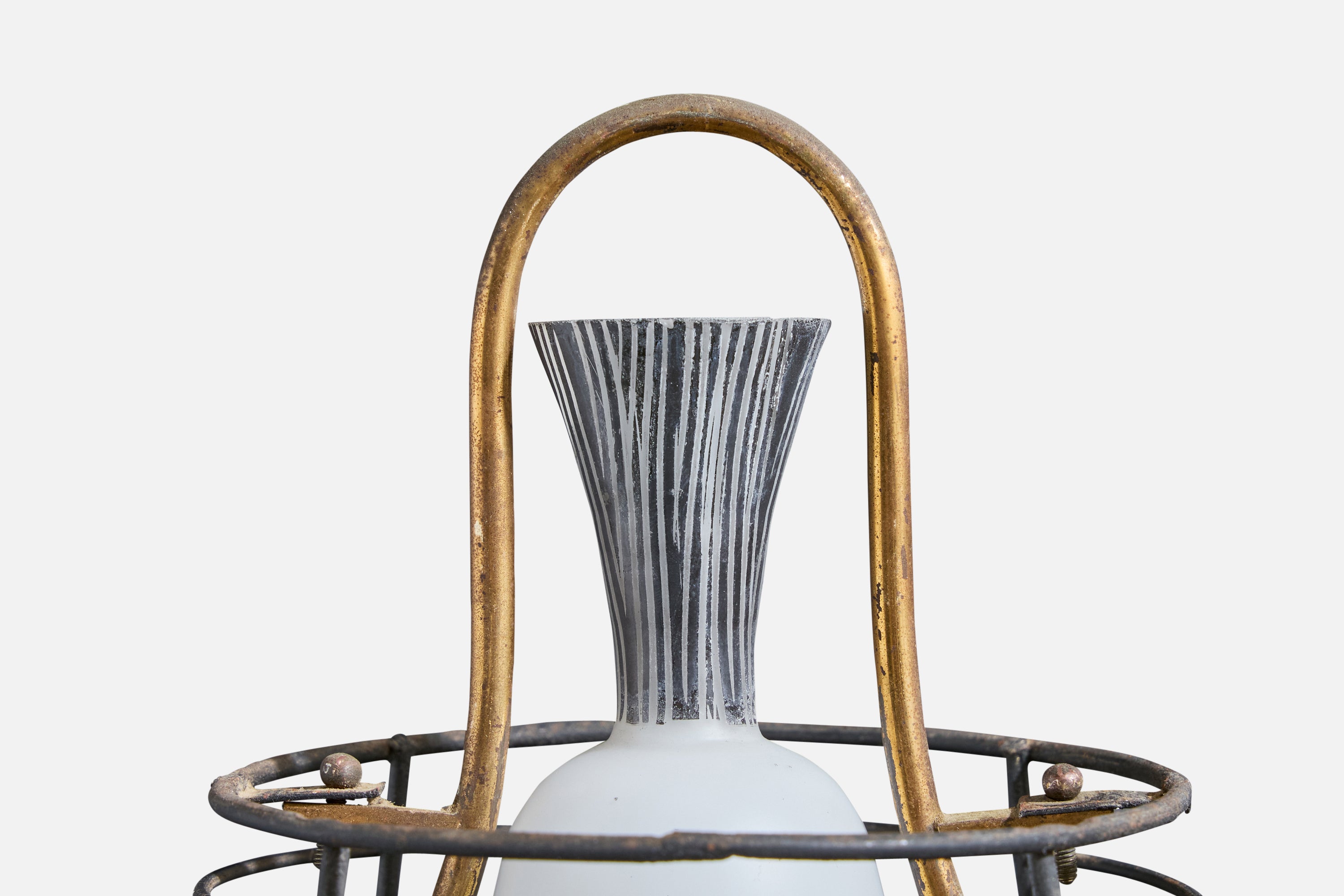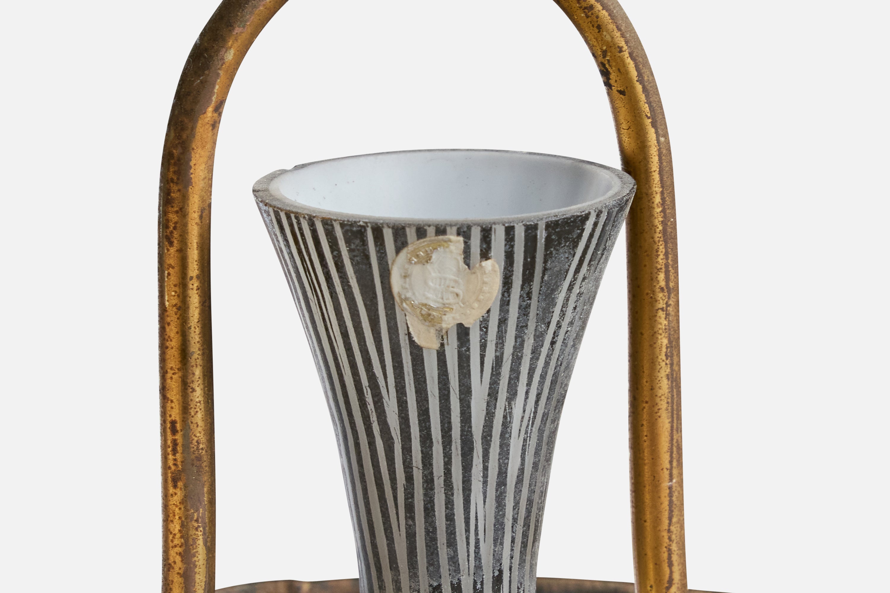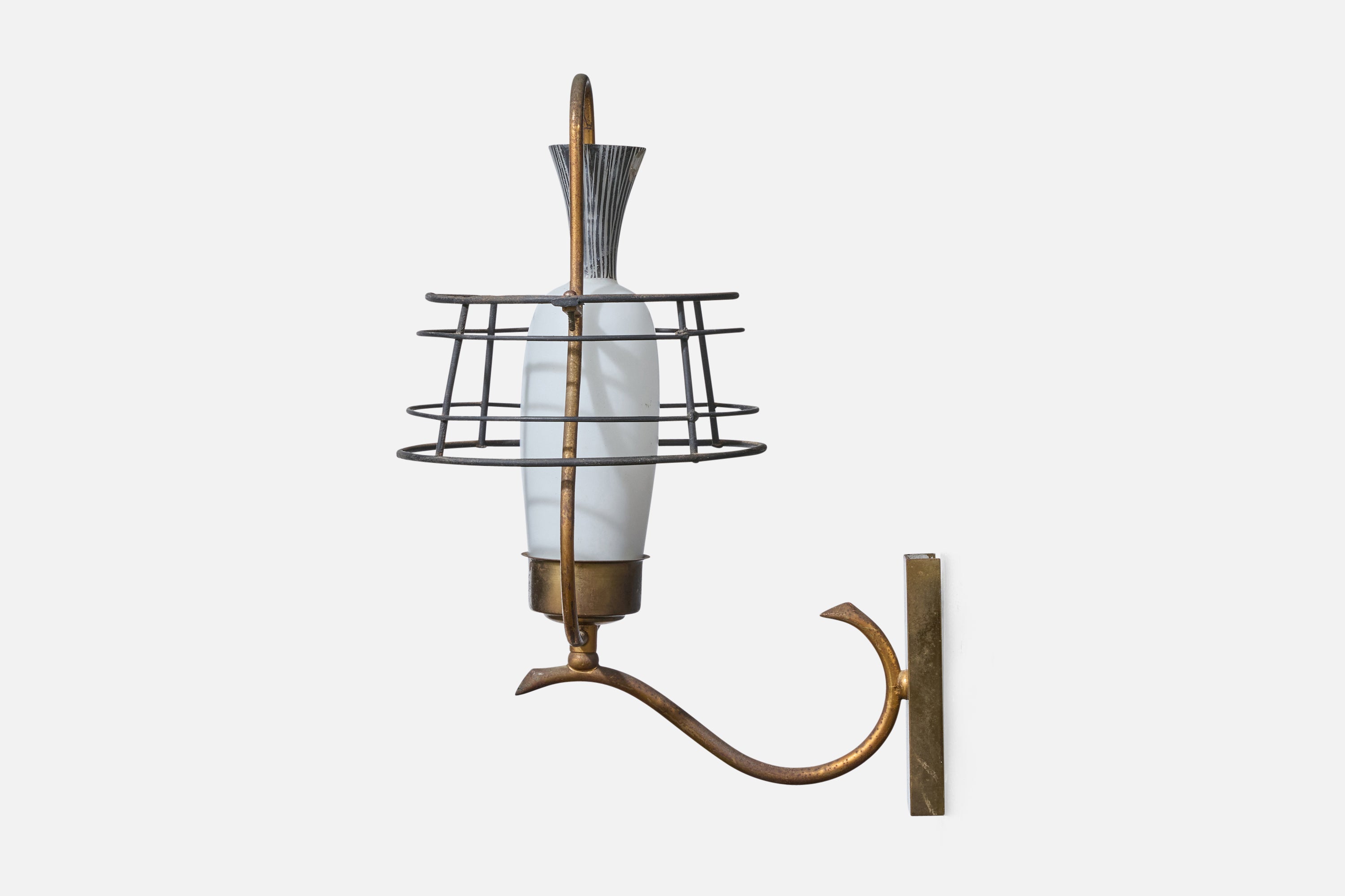 Italian Designer, Wall Lights, Brass, Metal, Glass, Italy, 1950s
