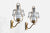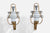 Heavy oxidation present throughout brass and other metal. Partial sticker and sticker residue present on top of glass shades.