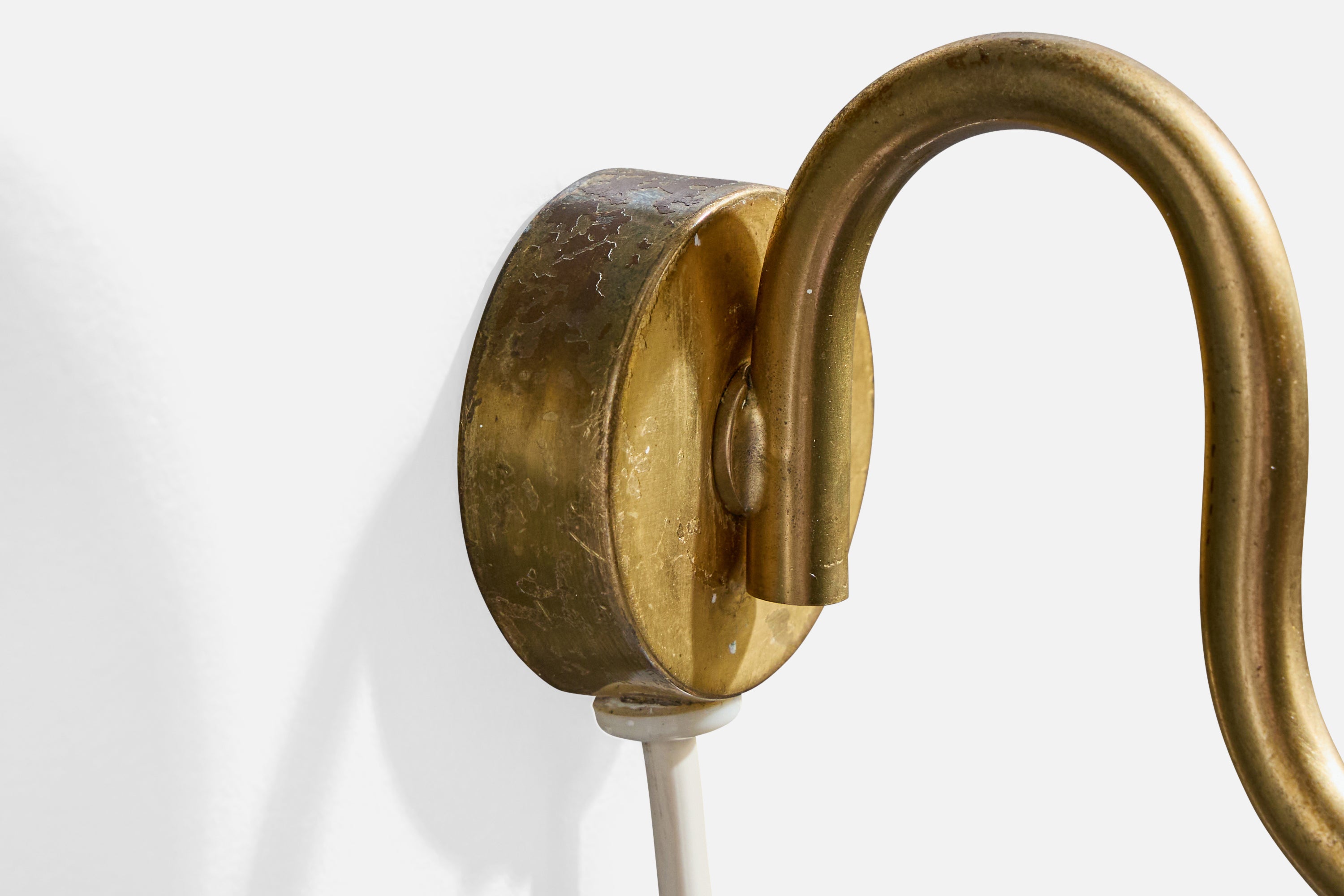 Swedish Designer, Wall Light, Brass, Glass, Sweden, 1940s