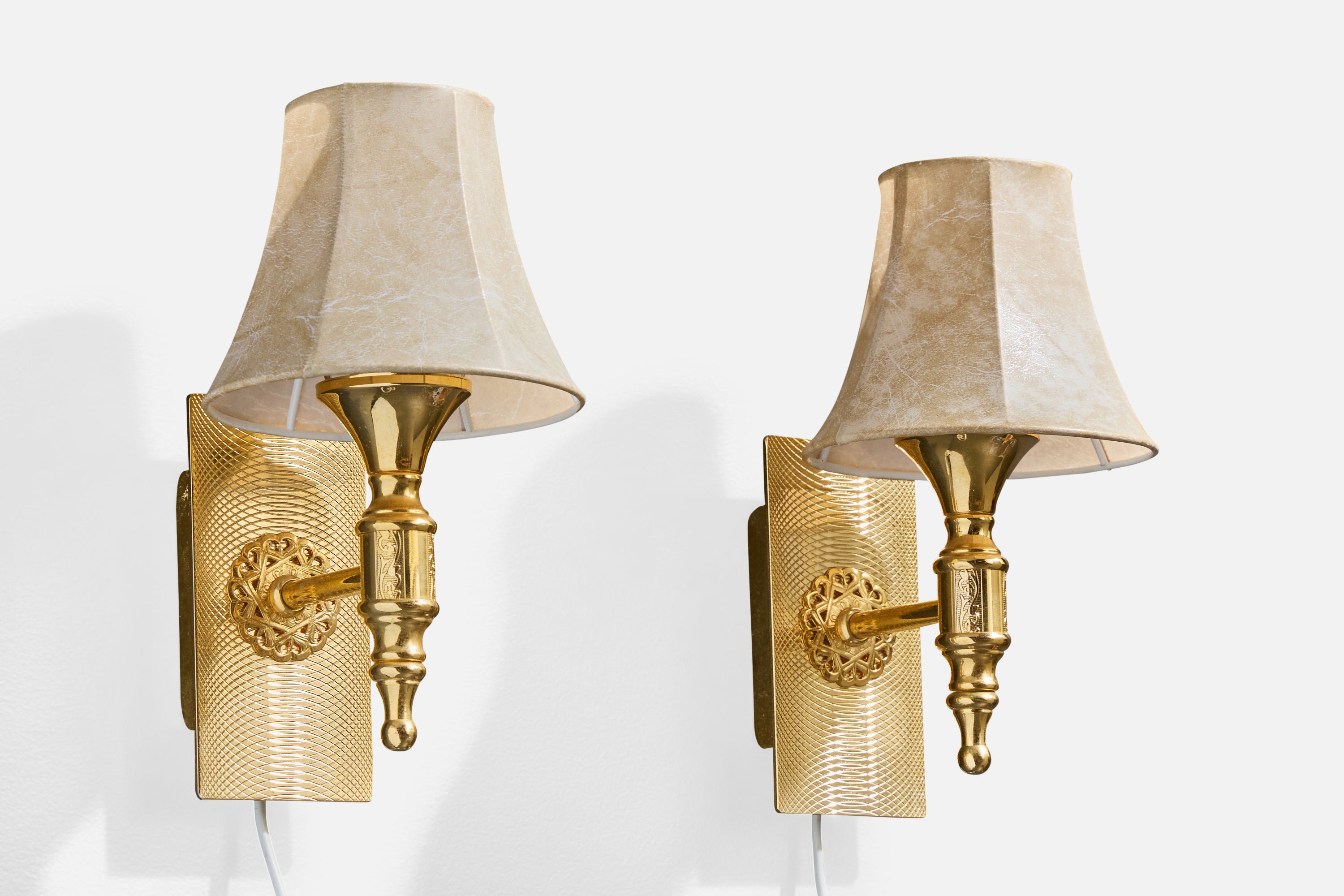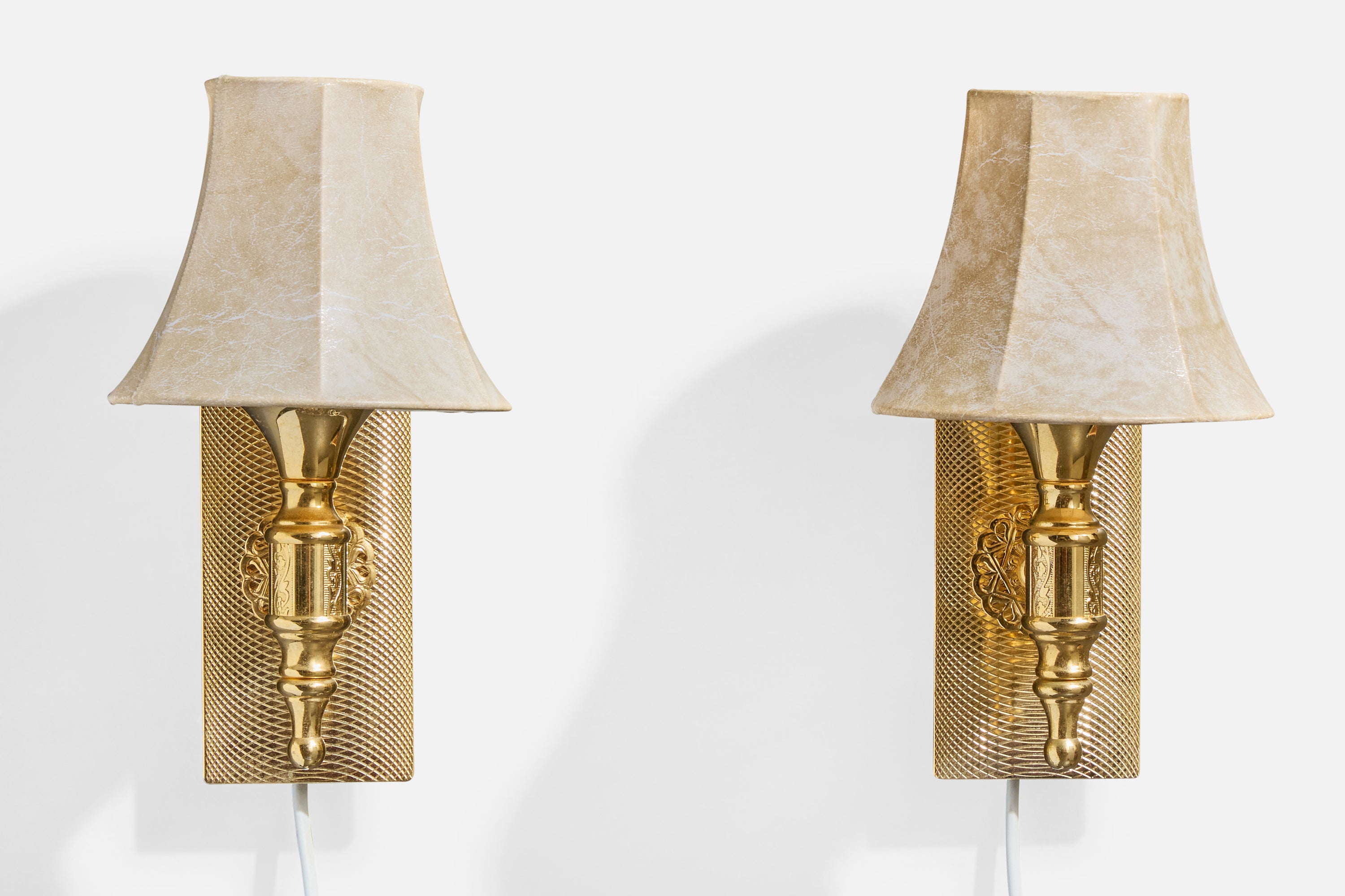 Italian Designer, Wall Lights, Brass, Resin, Italy, 1970s