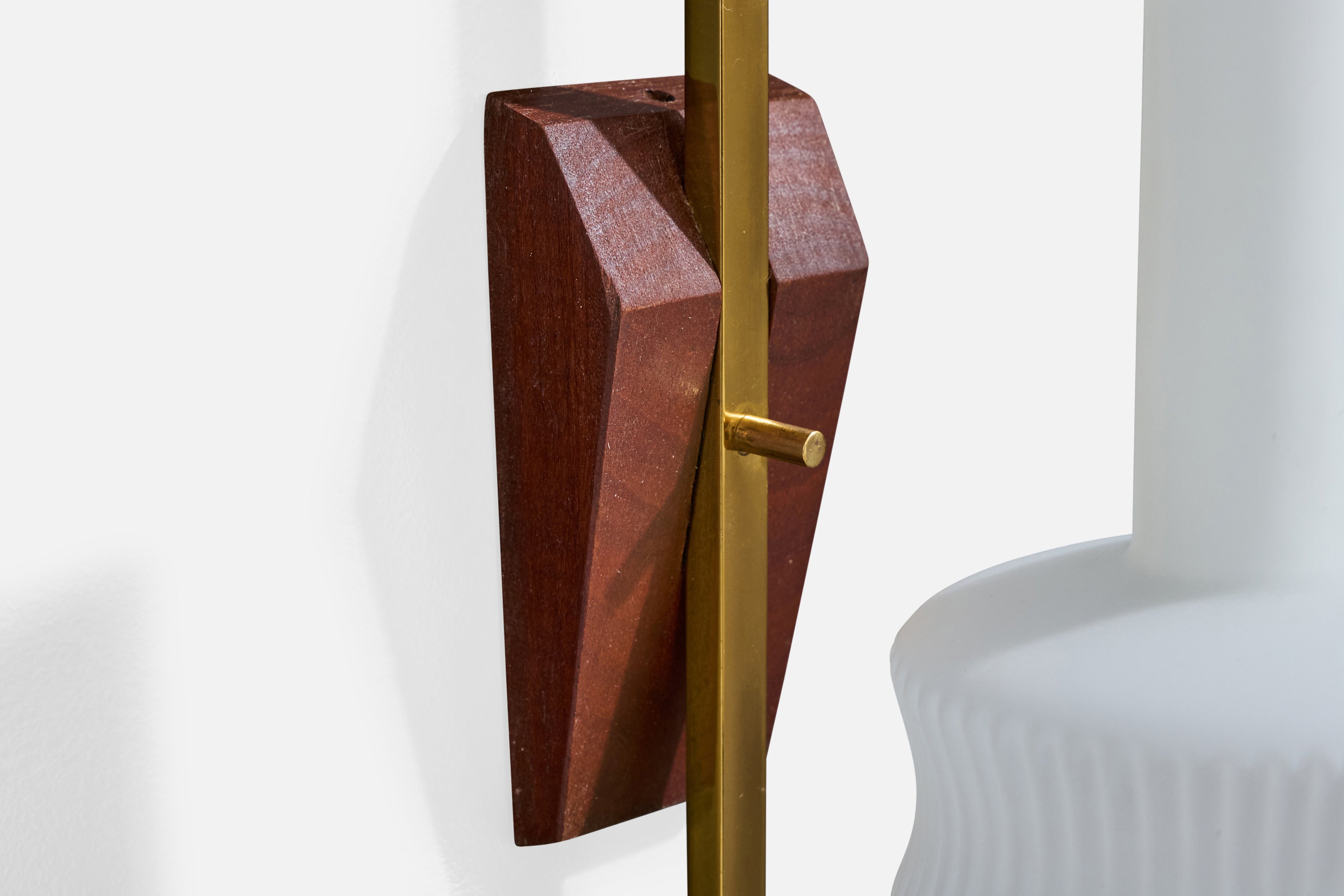 Italian Designer, Wall Lights, Teak, Brass, Metal, Glass, Italy, 1950s