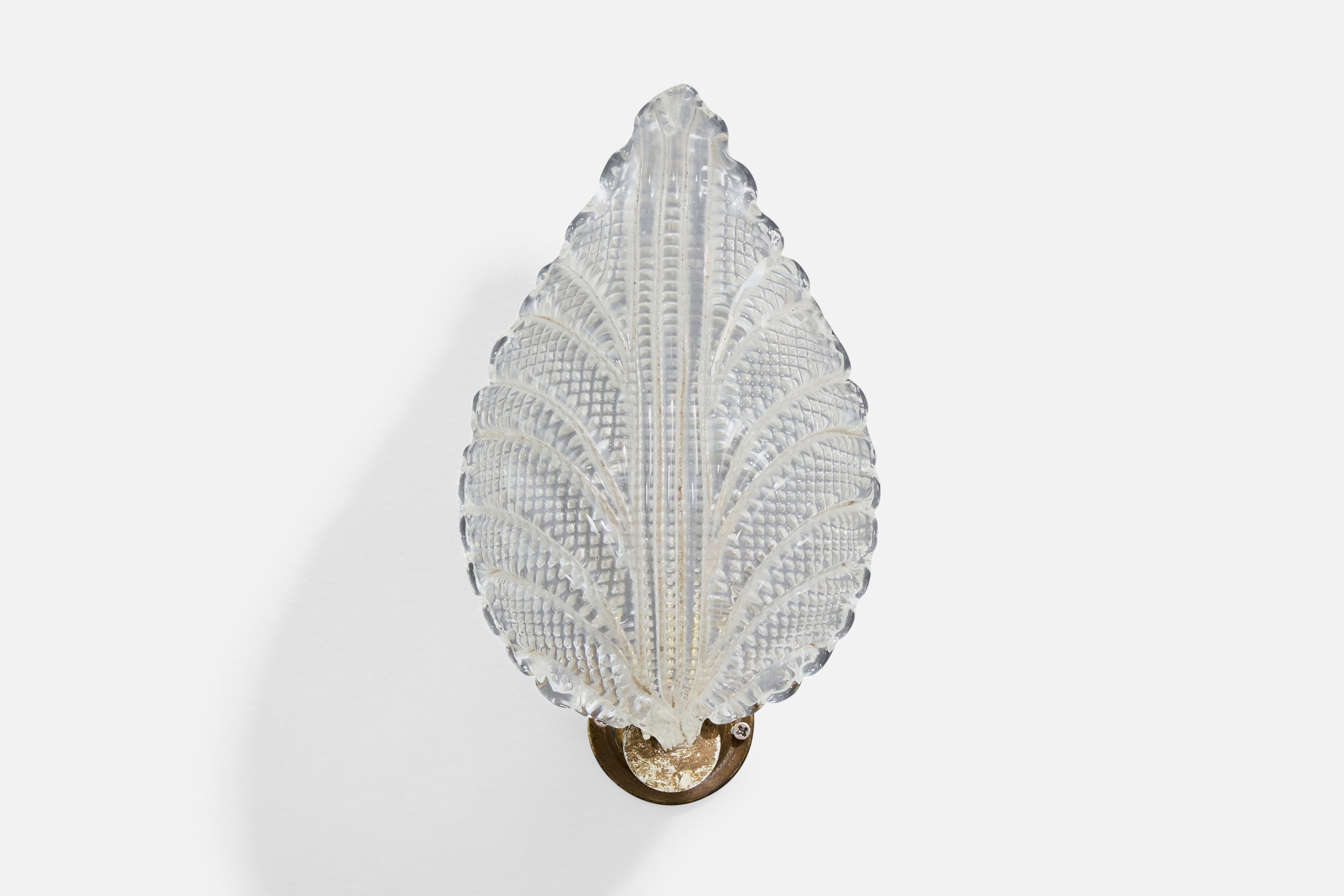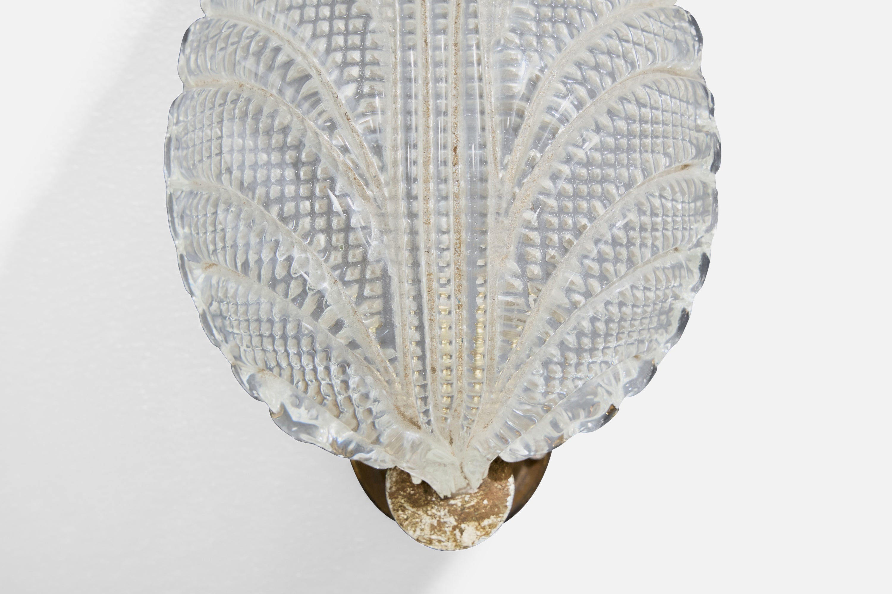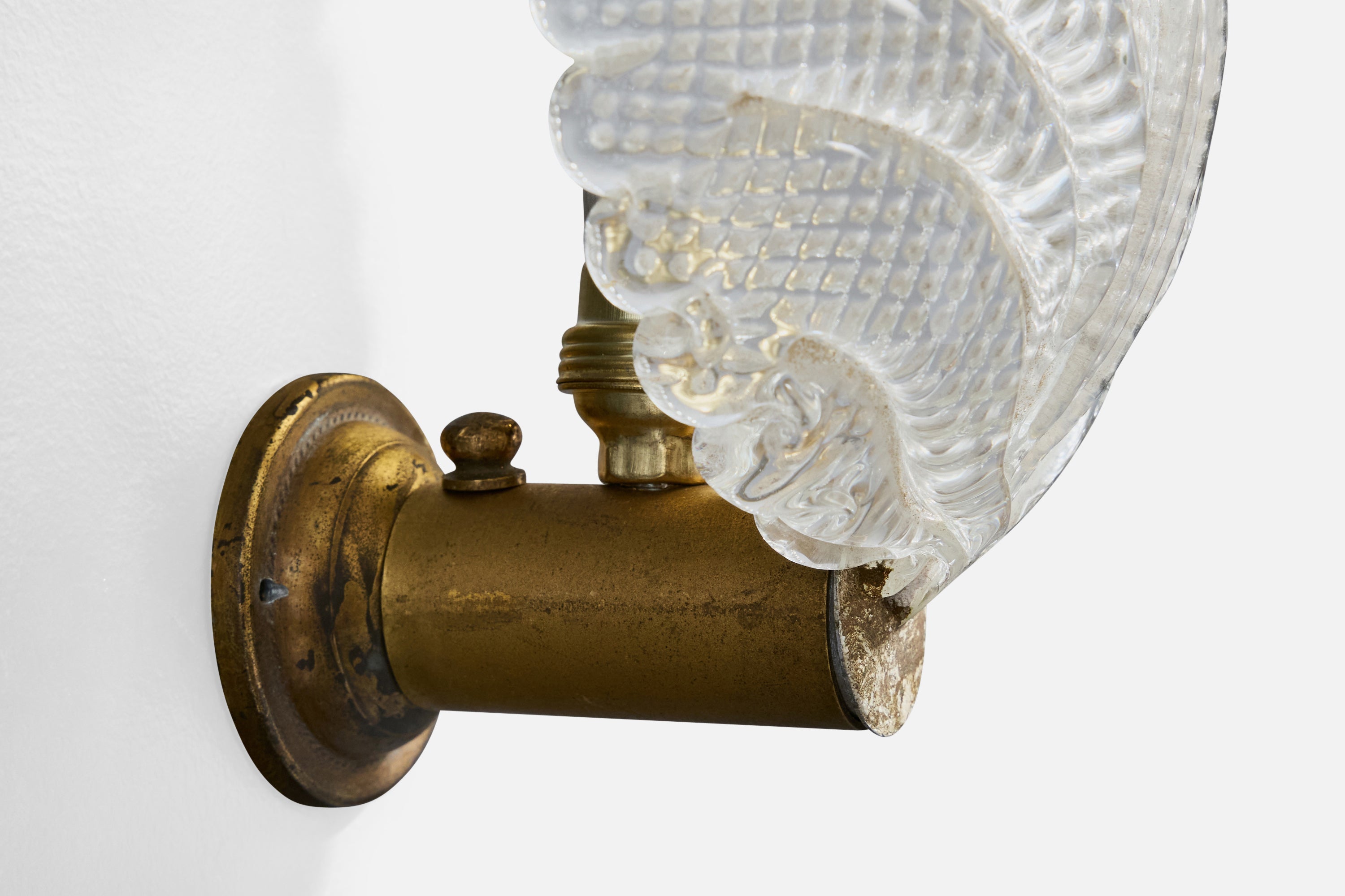 Italian Designer, Wall Light, Glass, Brass, Italy, 1940s