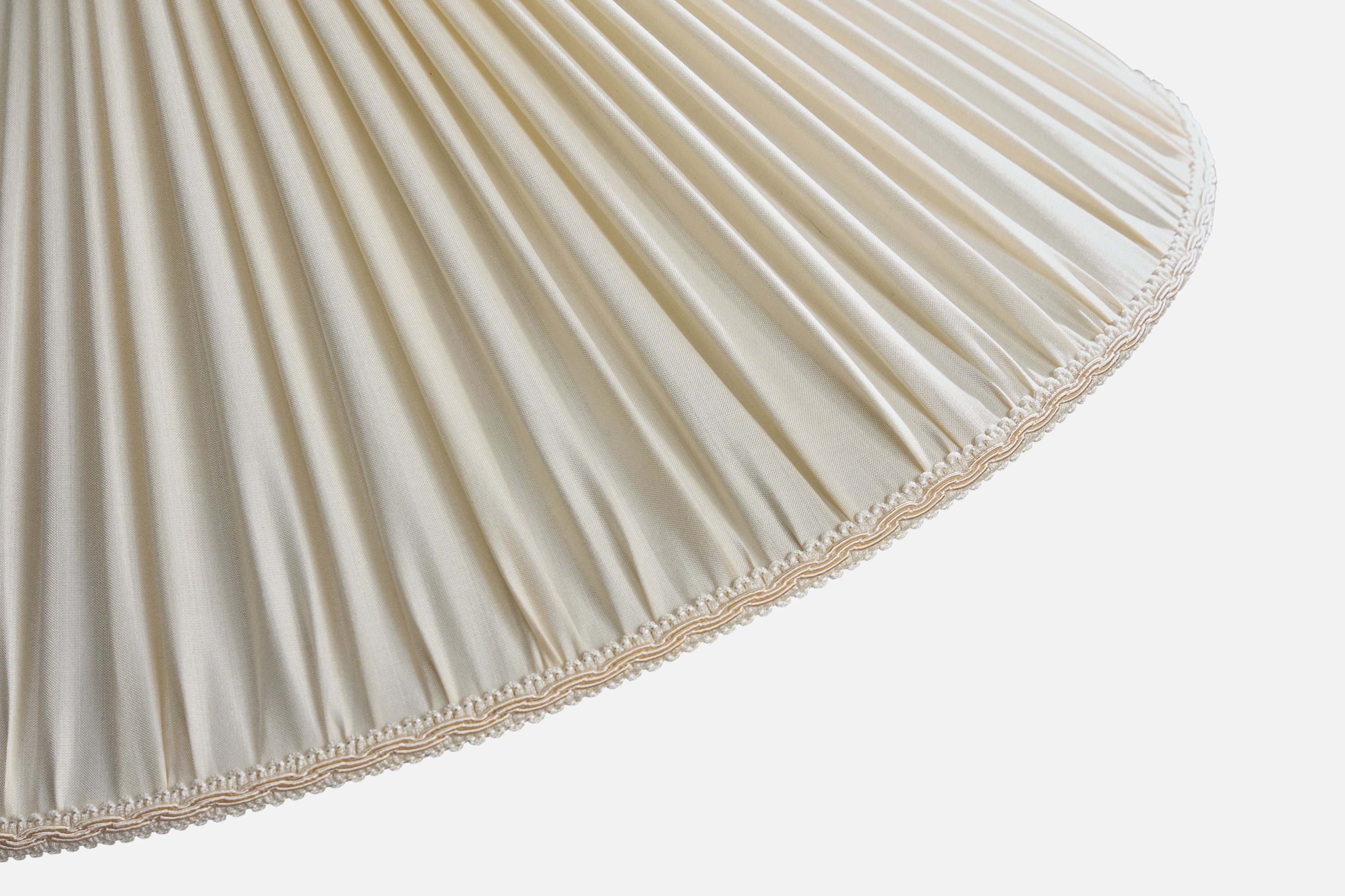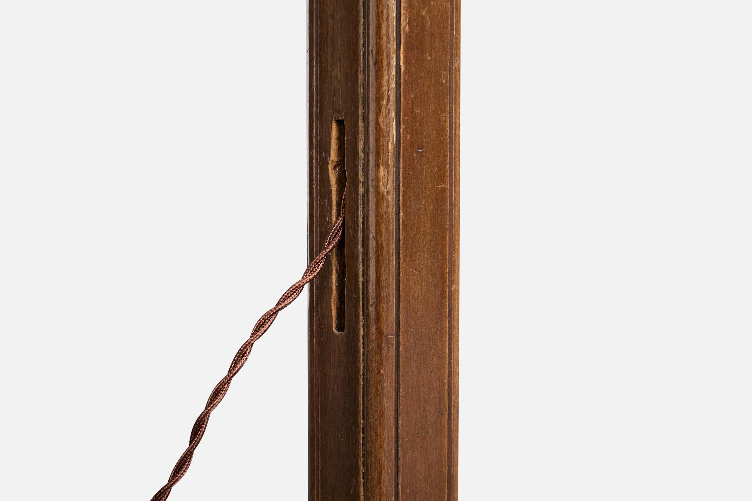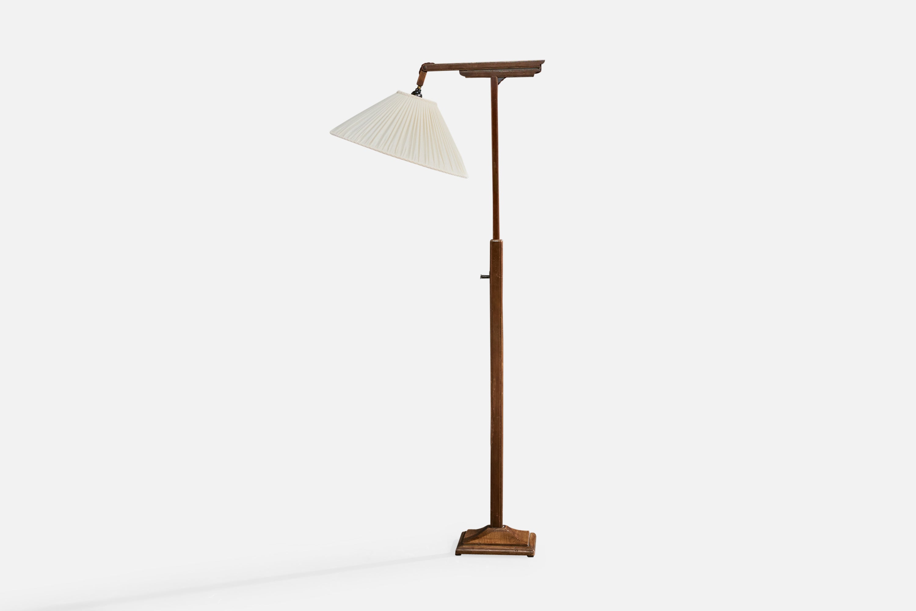 Italian Designer, Floor Lamp, Wood, Fabric, Brass, Italy, 1940s