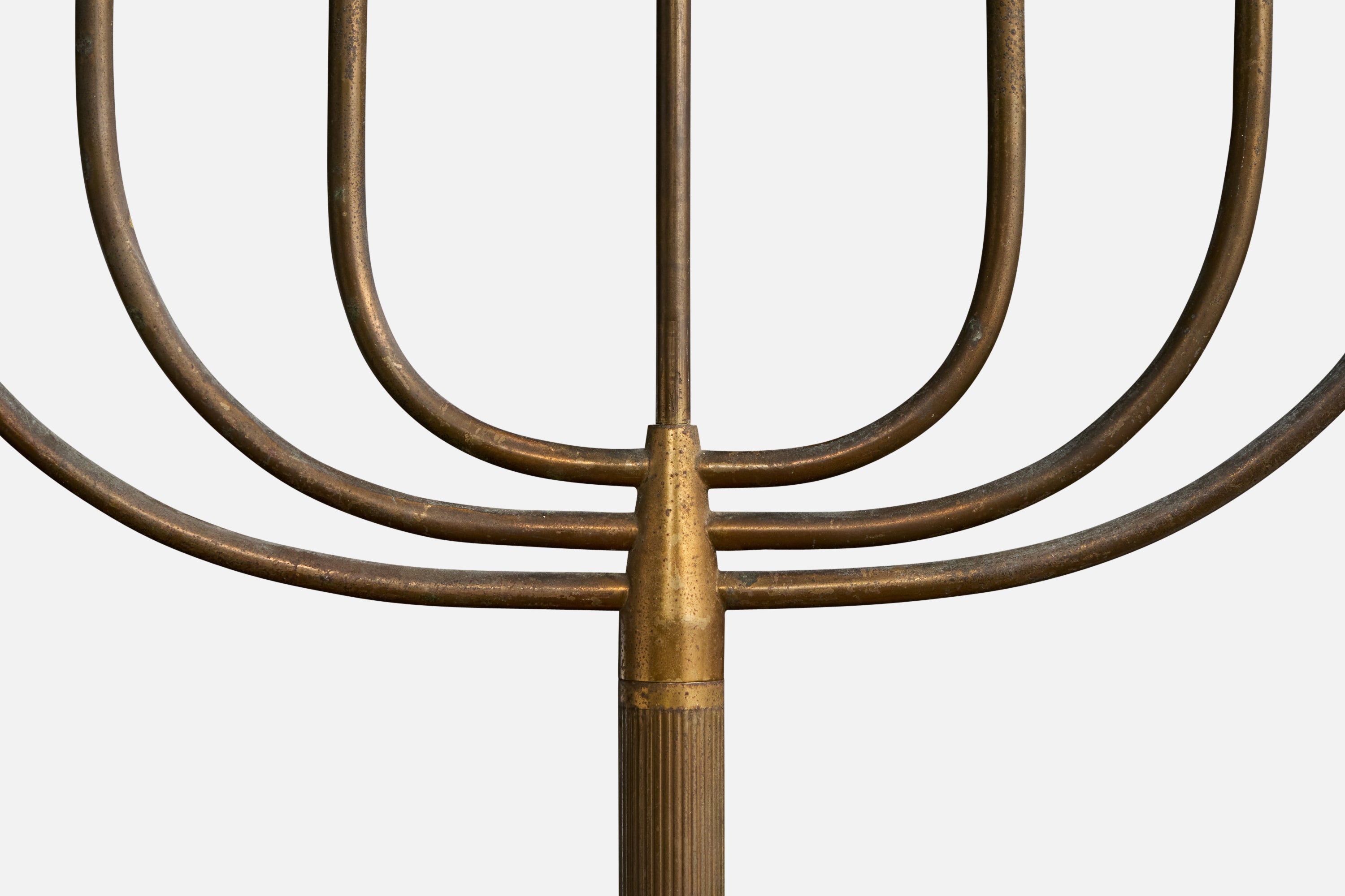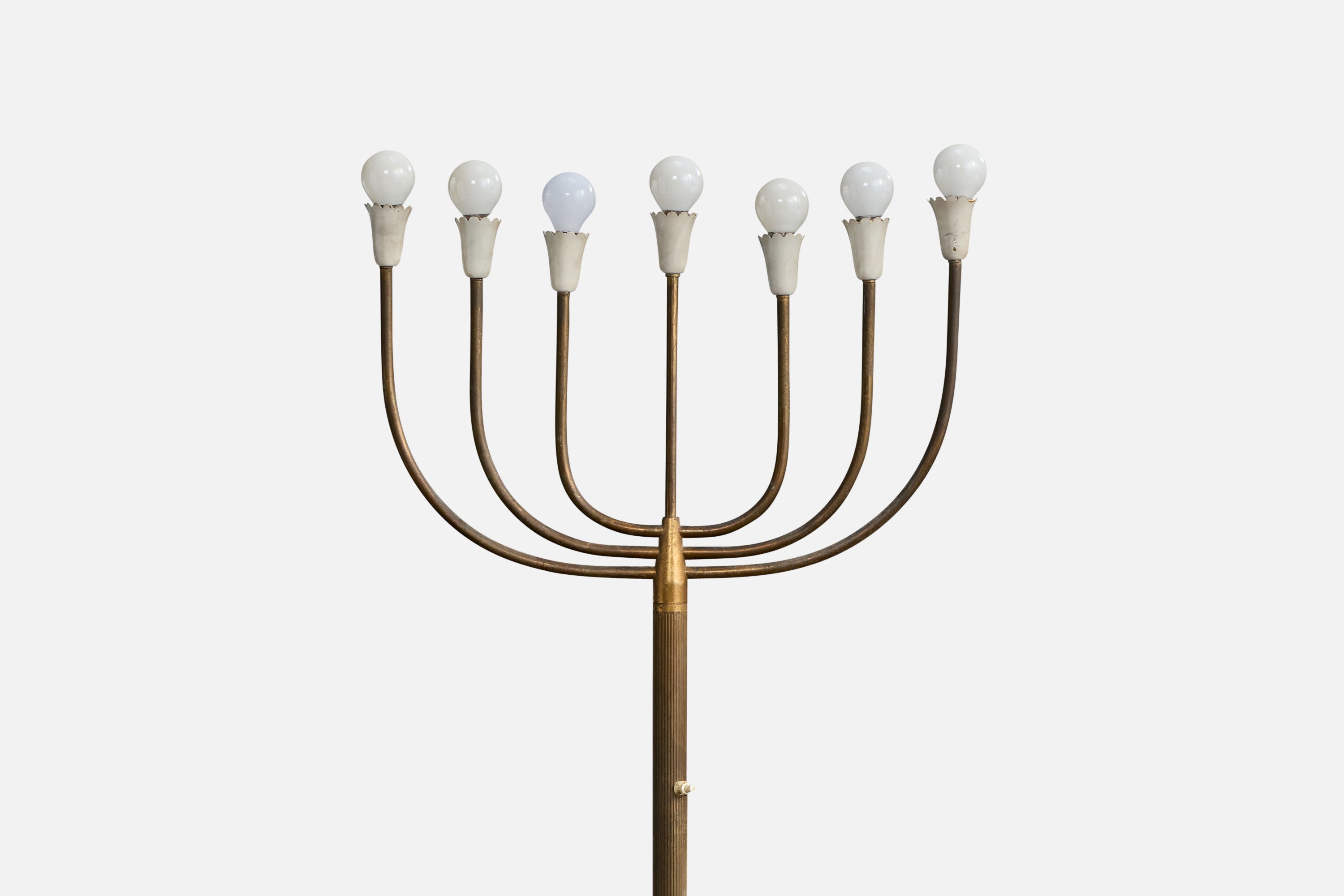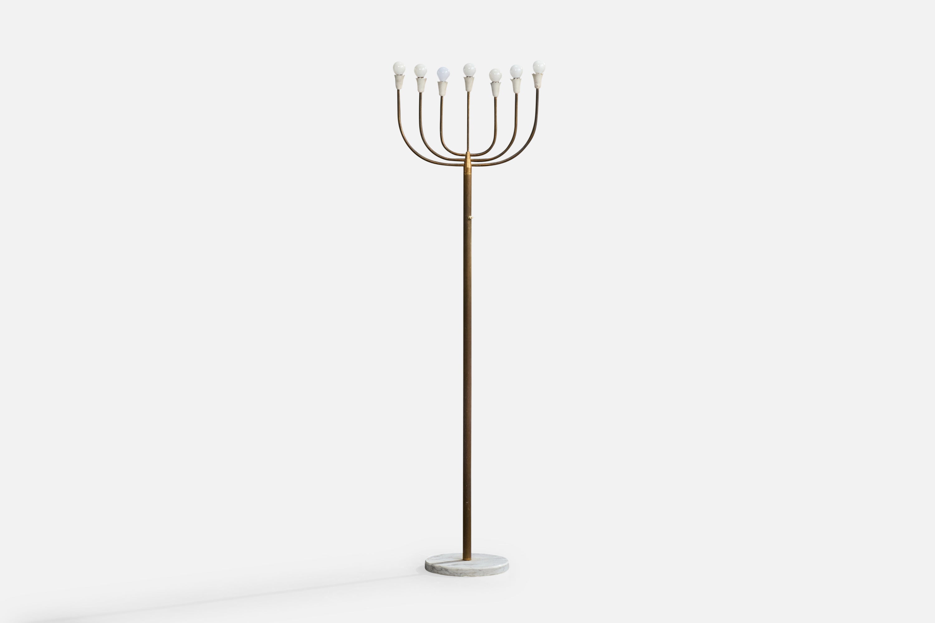 Italian Designer, Floor Lamp, Brass, Marble, Metal, Italy, 1950s