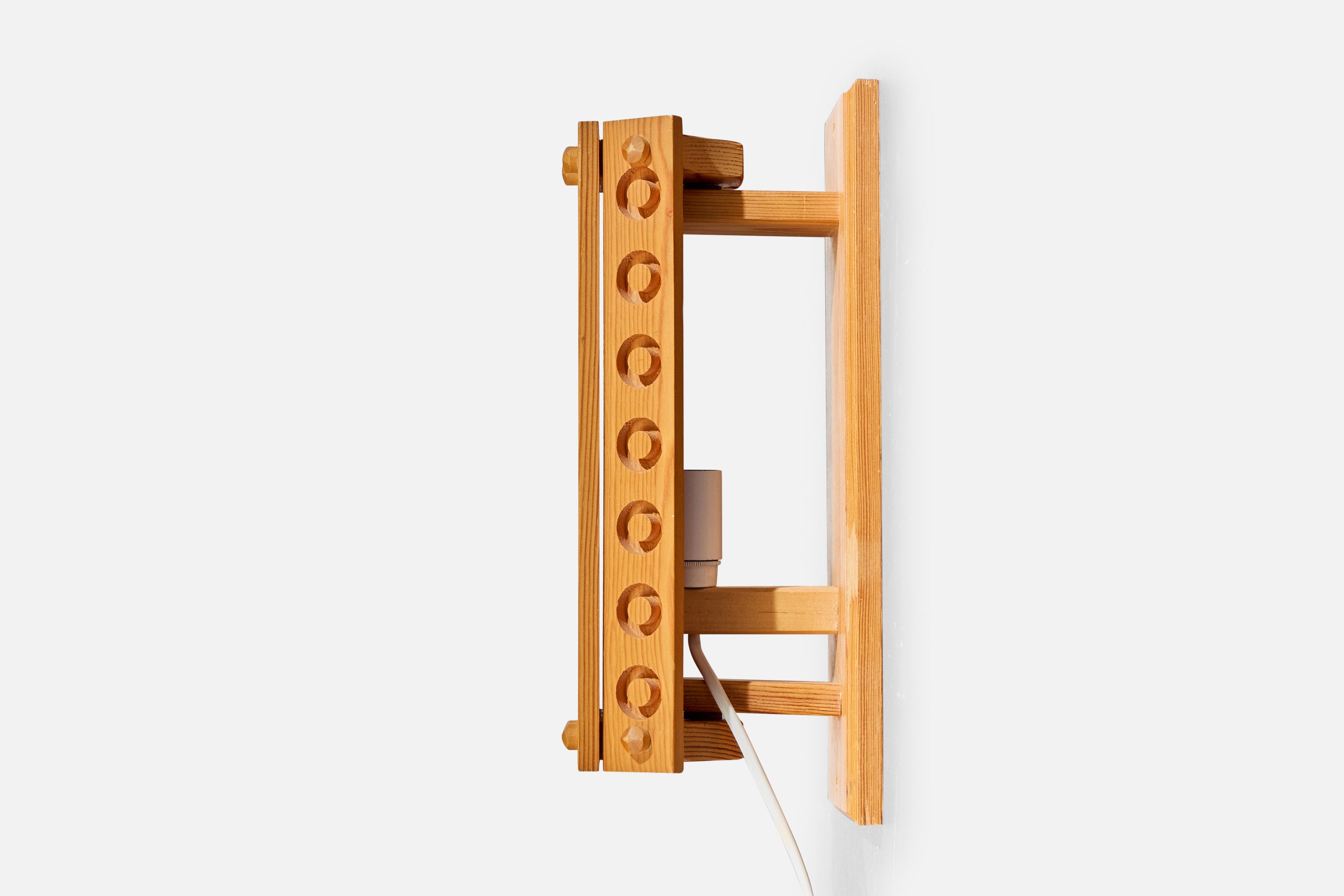A pair of pine wall lights designed and produced in Sweden, c. 1980s.