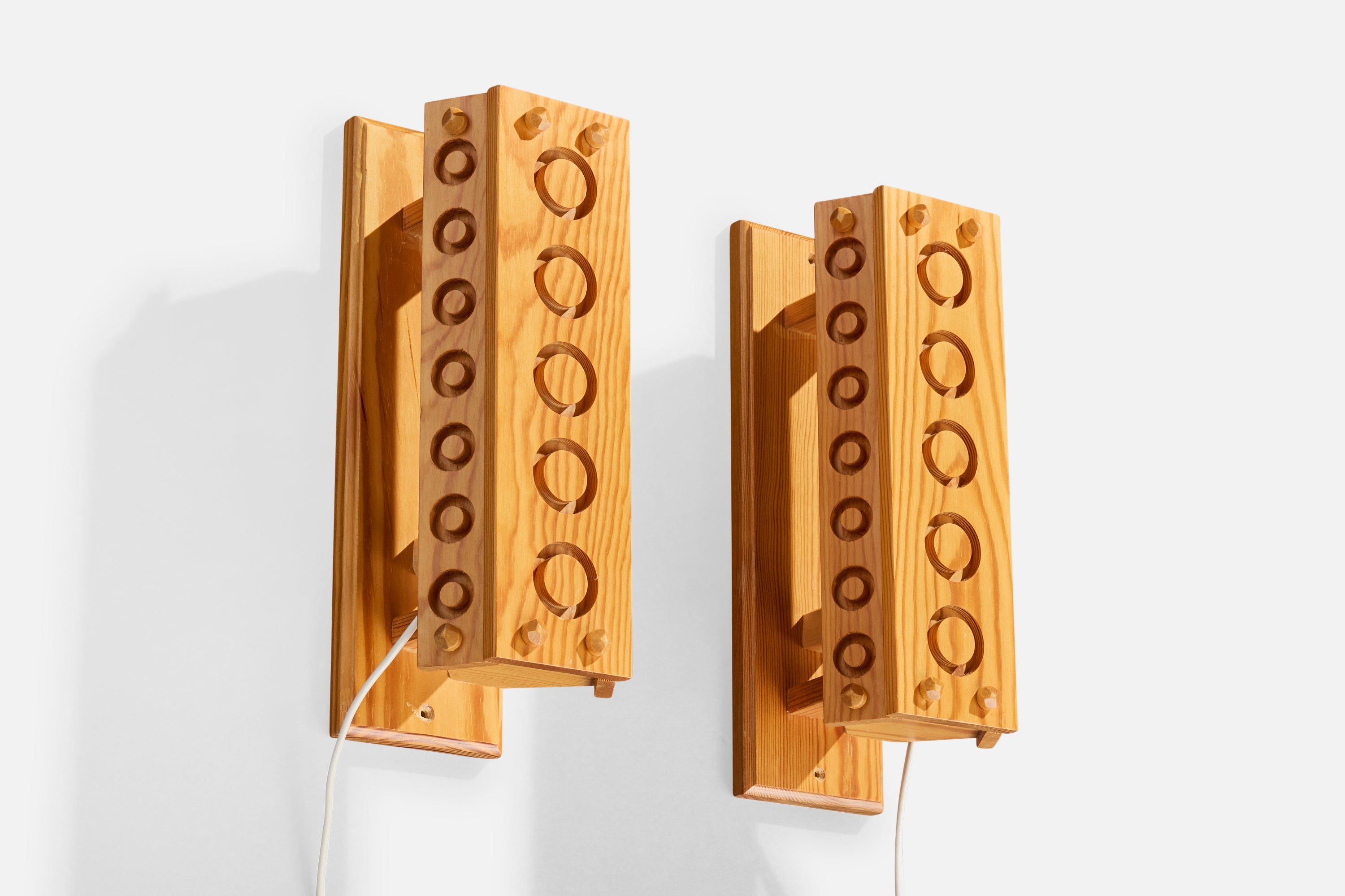 Swedish Designer, Wall Lights, Pine, Sweden, 1980s