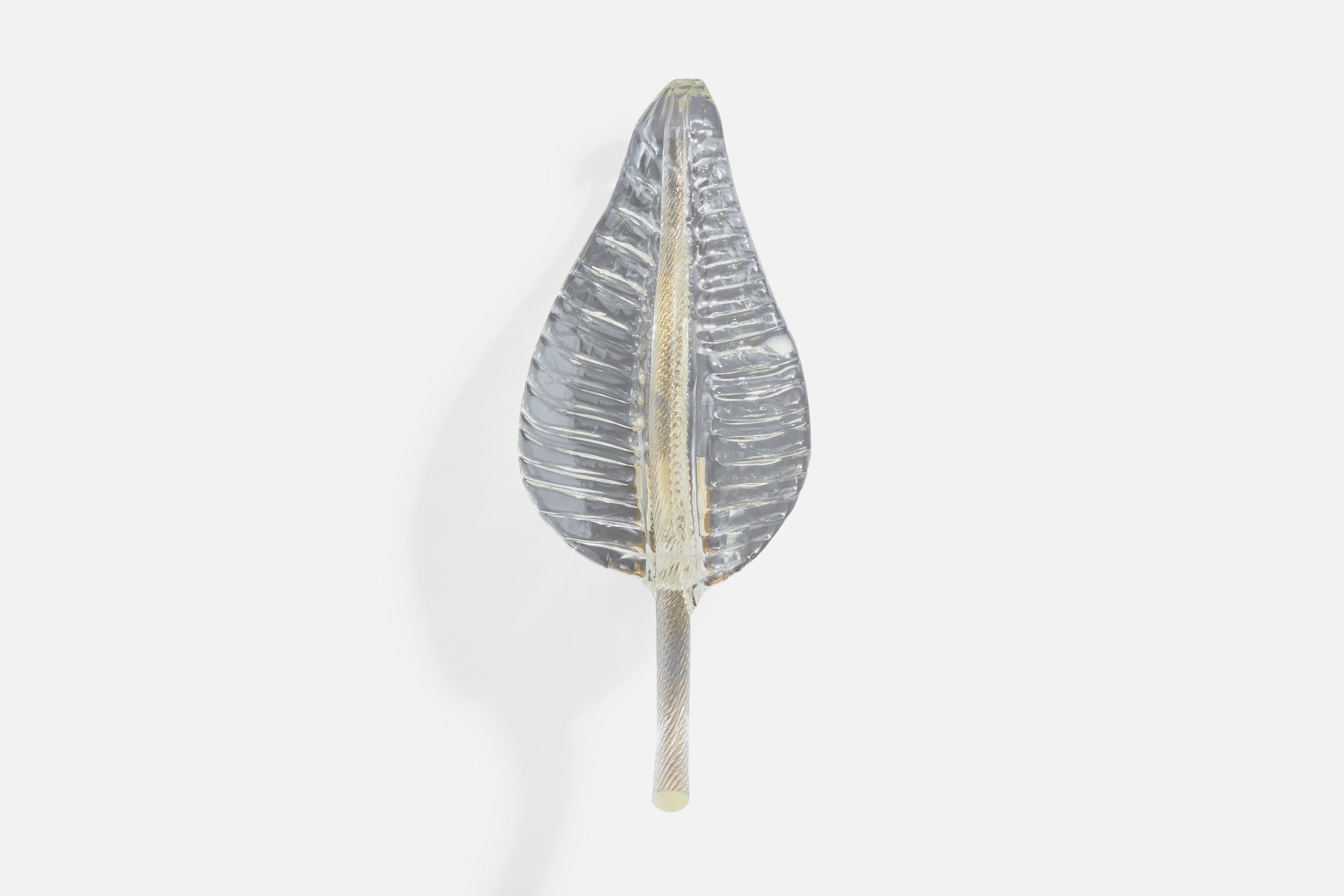 A brass and Murano glass wall light designed and produced in Italy, c. 1940s.
